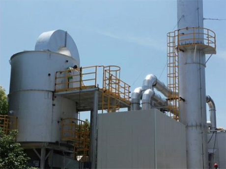 The exhaust gas is heated to around 300 ℃ through thermal storage ceramic heat exchange at around 70 ℃, and undergoes flameless combustion reaction at a temperature of around 350 ℃. After combustion, the exhaust gas is cooled to around 110 ℃ through another thermal storage chamber and thermal storage ceramic heat exchange. Organic exhaust gas undergoes oxidation reaction in the combustion chamber, generating CO2 and H2O, which are purified and discharged into the chimney.