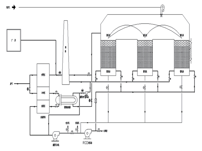 The zeolite molecular sieve adsorption+post-treatment device (RT0) consists of a waste gas pretreatment system, a zeolite molecular sieve adsorption system, a desorption system, a drying and cooling system, a post-treatment system (RT0), and an automatic control system.